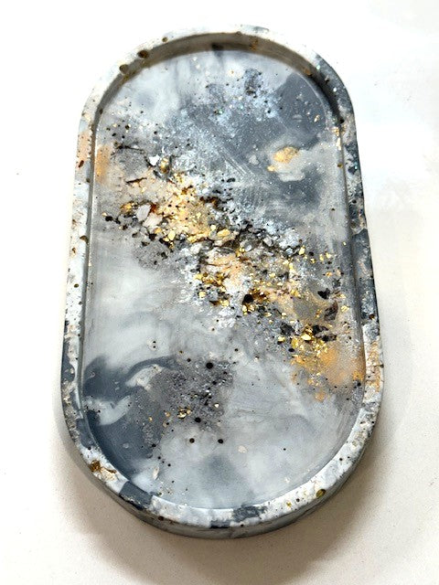Handcrafted Geode Trinket Tray (Grey & White)