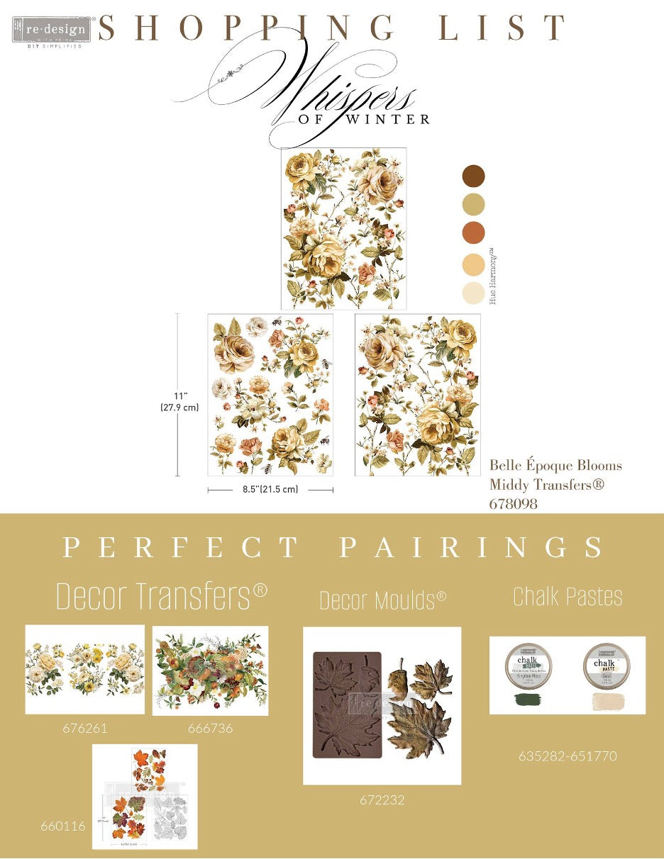 HOW TO USE: Peel, press, and rub the Belle Époque Blooms Middy Transfer onto your surface of choice for a seamless, hand-painted finish in minutes.