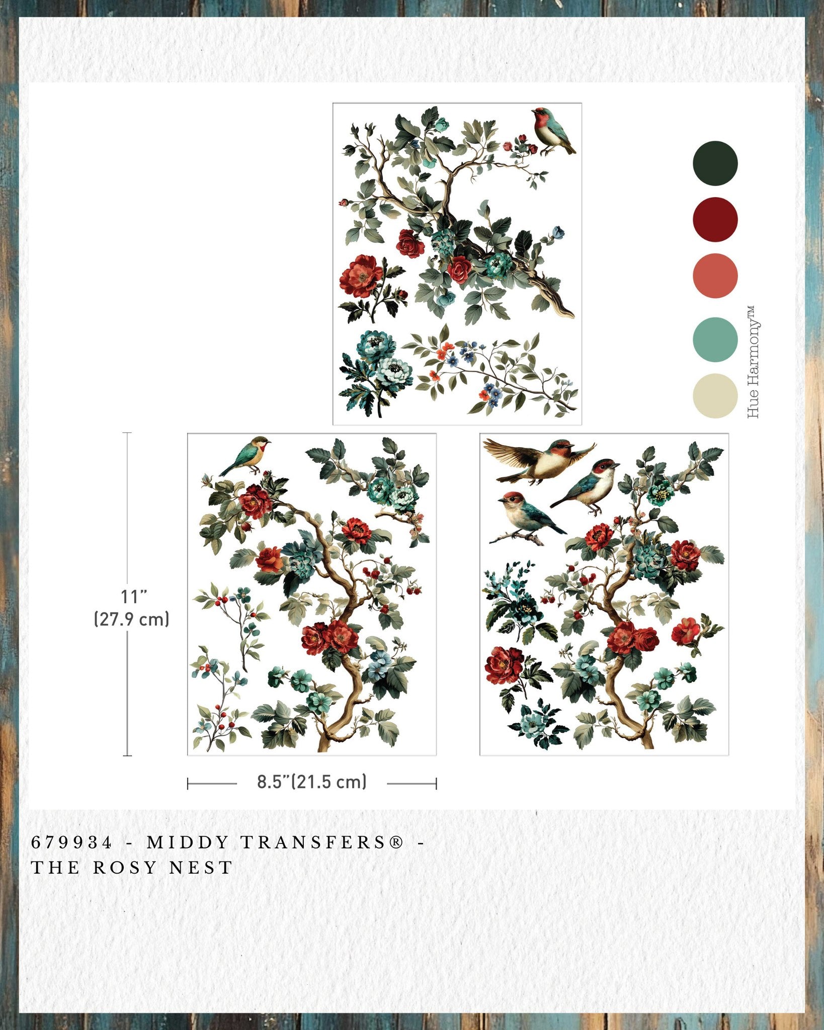 Add a touch of cozy charm with The Rosy Nest. These beautifully scaled Middy Transfers showcase clusters of winter roses and foliage, designed to fit smaller projects like trays, ornaments, signs, and more. Easy to apply and versatile, they bring instant holiday spirit to your creations.